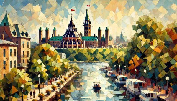 Title: Colorful Geometric Interpretation of Ottawa's Iconic Parliament Hill