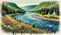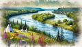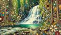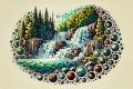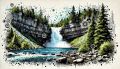 Vibrant Artistic Illustration of a Waterfall Amidst Ottawa's Landscape