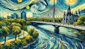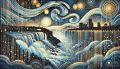 ** Enchanting Canadian Landscape with Waterfall: A Modern Van Gogh-Inspired Artwork
