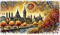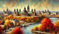 Autumnal Splendor in Ottawa: A Stylized Vision of Nature and Architecture