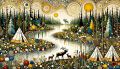 Tranquil Canadian Wilderness Scene with Moose and Tipis