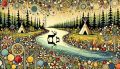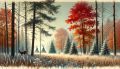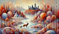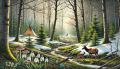 Enchanting Abstract Forest and River Landscape with Wildlife Art