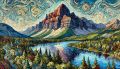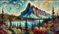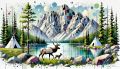 Enchanting Wilderness: A Stylized Elk beside a Serene Mountain Lake