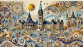 Vibrant Klimt-Inspired Abstract of Ottawa's Peace Tower and Landscape