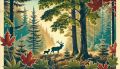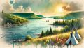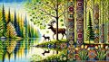 Enchanted Canadian Landscape with Wildlife and Swirling Skies