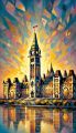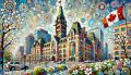 Vibrant Brushstrokes Capture Ottawa's Iconic Parliamentary Architecture