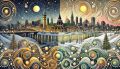 Enchanting Winter Night Over Ottawa: A Stylized Artistic Interpretation