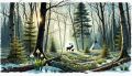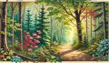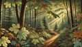Enchanted Forest Dawn: A Tranquil Wilderness in Artistic Splendor