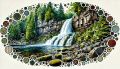 Mystical Waterfall Oasis with Wildlife in Abstract Canadian Landscape