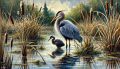 Serene Watercolor Illustration of a Loon and Its Chick in Nature