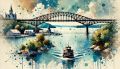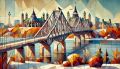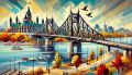 Cubist-Inspired Artistic Rendering of Ottawa's Landmark Bridge at Sunrise