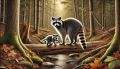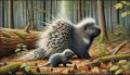 Mother Porcupine and Her Young: A Serene Forest Scene