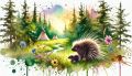Whimsical Wilderness: A Porcupine's Dream in Watercolor Vistas