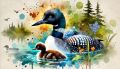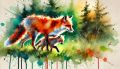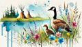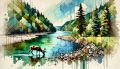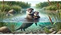 Delicate Dance of Nature: Otters in a Vibrant Watercolor Landscape