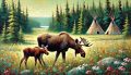 "Autumn Whisper: Moose and Teepees in a Stylized Canadian Forest"