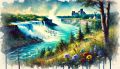 Vibrant Watercolor Interpretation of Niagara Falls and Skyline