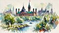 Ethereal Depiction of Ottawa's Urban Landscape in Watercolor
