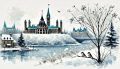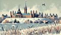Enchanting Winter Magic over Guelph: Artistic Cityscape Illustration