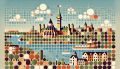 Artistic Interpretation of Ottawa's Skyline in Watercolor and Mosaic