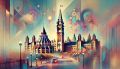 Enchanted Vision of Ottawa: Colorful Artistic Interpretation of Parliament Hill