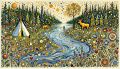 Captivating Watercolor of Tranquil Canadian Riverside with Teepees