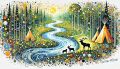 Enchanted Wilderness: Squirrels and Teepees in a Magical Forest