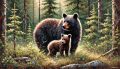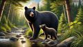 Majestic Bears in a Serene Forest: Mother and Cub by the Stream