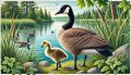 Serene Canadian Wilderness: Geese Beside a Floral Lake