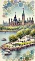 Vibrant Brushstrokes Capture Ottawa's Enchanting Riverfront and Architecture
