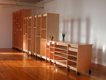 • Map cabinets and shallow drawers are best for storing paper works that are interleaved, matted, or in a folder. They are also ideal for storing oversized prints. Cabinets and drawers are effective options to protect your work against dust and light.