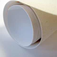 A roll of Ink Jet canvas before its printed, with the raw tecture of the backside visible
