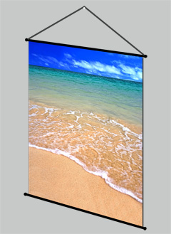 Poster hangers affix to the top and bottom edges of the poster and hang from string or wire