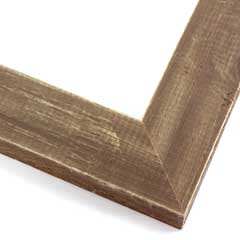 This simple, flat faced frame features rustic wood with a light wash. The natural grain shows through the thin, mid-brown varnish, giving the frame a soft, antiqued appearance.
